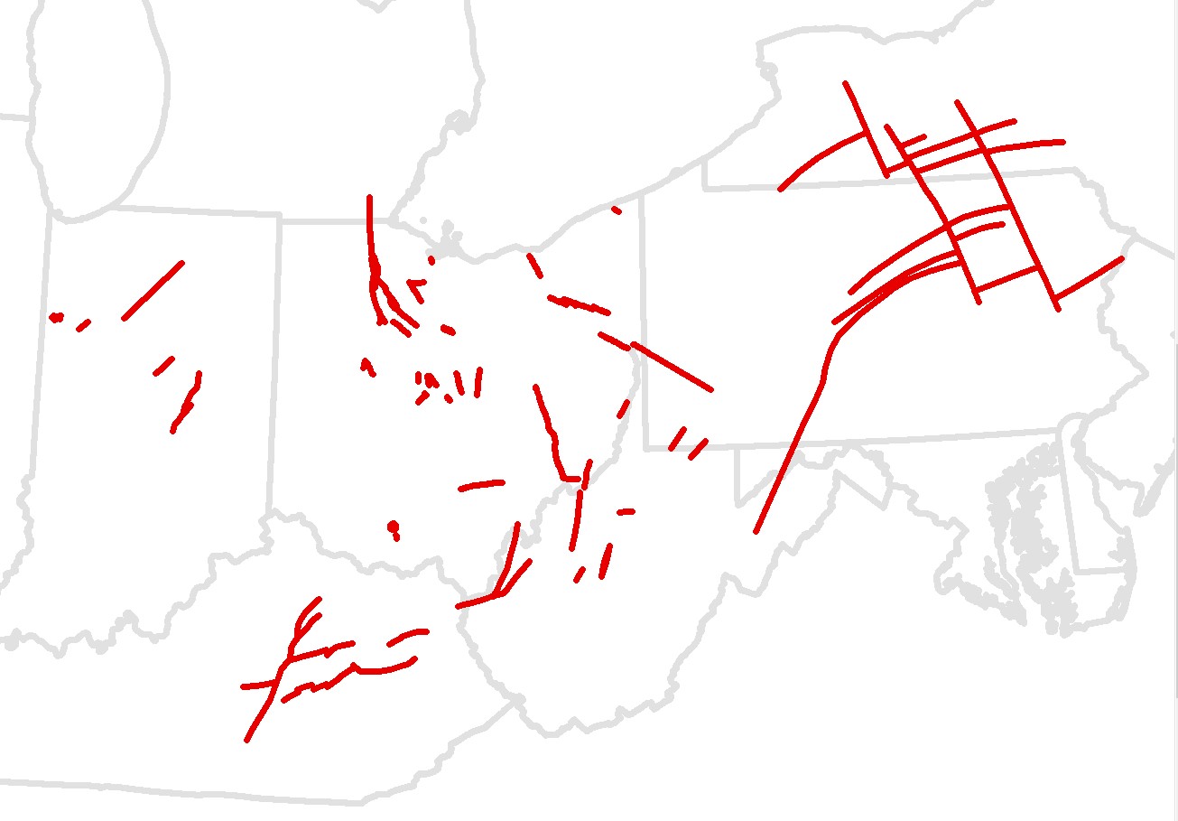 Description: This is a dataset showing the location of faults and other structures that penetrate and affect the Upper Ordovician in New York, Pennsylvania, Maryland, West Virginia, Kentucky, Ohio, Indiana and Michigan.Author/Originator: Battelle Memorial InstituteDate Created: 2021
