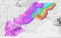 Description: This is an isopach map representing the top of the Rose Run sandstone. It was created by computer interpolation (kriging) of borehole data for the main play in central/ eastern Ohio. In KY, the extensive faulting required that the data be interpolated by hand. Hand interpolation/ extrapolation was also conducted in western PA, based on information from Riley et al., 1993 and interpretation of more recent well data. The KY isopach map cannot be joined with the rest of the map because of a significant difference in picks. In general, KY picks bracket a layer of sand, whereas picks in OH identify the top of that sand, but the bottom picks include fine grained clastics and dolomites. Description of general mapping techniques used in this project can be found in- Venteris, E.R., M.P. Solis, K.M. Carter, and J. McDonald, 2005, Uncertainty and Grid-Resolution Analysis for Regional-Scale Geologic Maps, Proceedings of the 2005 International Association of Mathematical Geology Annual MeetingAuthor/Originator: The Geological Surveys of Ohio, Kentucky, Maryland, Michigan, Pennsylvania and West VirginiaDate Created: 2005