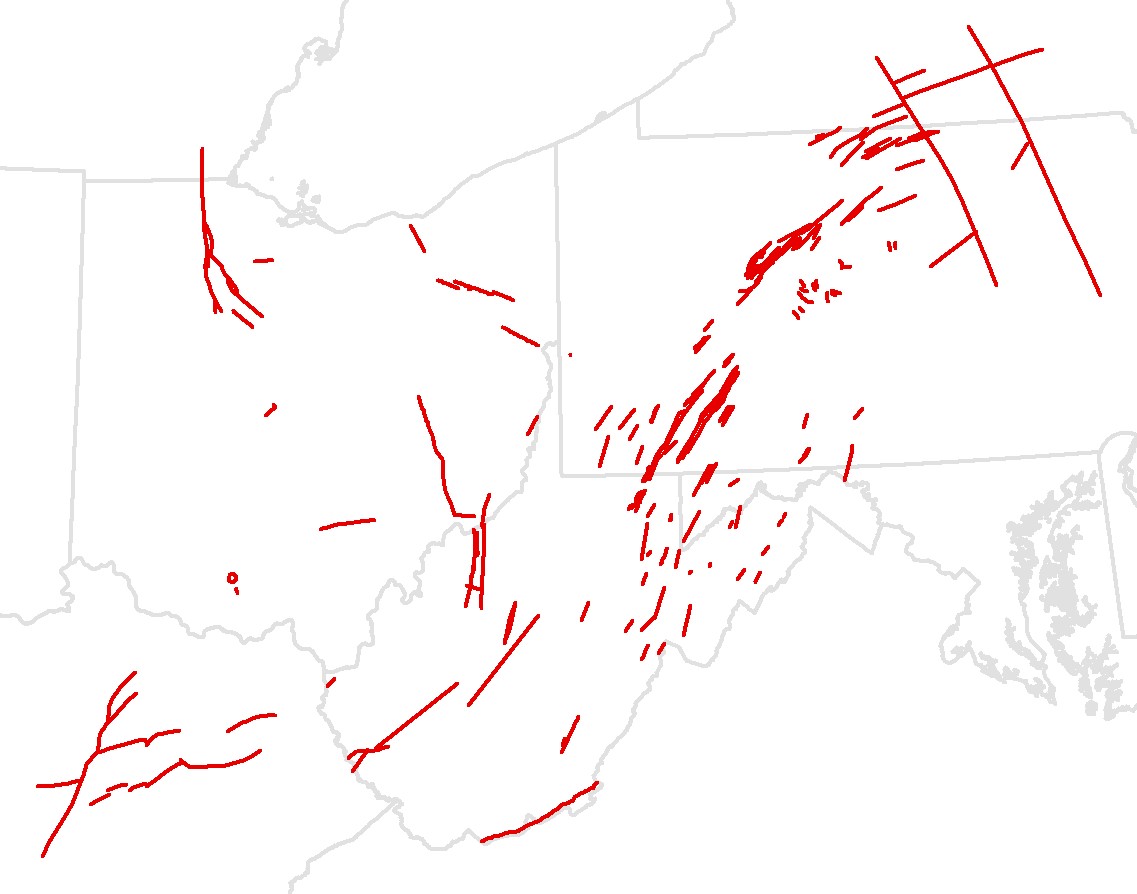 Description: This is a dataset showing the location of faults and other structures that penetrate and affect the Devonian Mixed Clastics and Carbonates in Ohio, New York, Pennsylvania, Maryland, West Virginia and Kentucky and laterally equivalent Bois Blanc and Sylvania Sandstone in Michigan.Author/Originator: Battelle Memorial InstituteDate Created: 2021