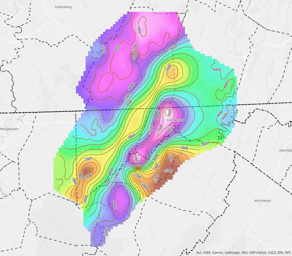 Description: This file is a component of the digital structure contour map of the top of the Needmore Formation in Maryland, West Virginia and Pennsylvania (1:500,000 scale). The contour map is based on available borehole data for the Needmore Formation provided by West Virginia, Pennsylvania and Maryland and compiled by the Maryland Geological Survey. The contour map includes the elevation data points (relative to mean sea level) and the lines contouring the estimated top of formation at a 500-foot contour interval. Location coordinates for the data points are from published and previously unpublished records. This file includes only the structure lines developed as digital line (arc) features in ESRI ArcGIS shapefile format. Structure contours (500-foot contour interval) were constructed by interpolation using Ordinary Kriging and subsequent minor manual methods applied to a selected dataset of available elevations of the top of formation from the compiled borehole information. The Ordinary Kriging was completed using the Geostatistical Analyst extension in ESRI's ArcGIS software. The feature attribute table, which is part of this file, includes the elevation represented by each contour line. The selected elevation data points used to develop the contour lines are provided in the associated point shapefile, NEED_TOP_PTS_MRCSP (see metadata associated with that file for details). This file and the related Needmore Formation Structure Contour Map, showing the elevation of the top of the unit, are provided in a projection specifically developed for this project, referred to as MRCSP_North_America_Albers_Equal_Area_Conic. This projection is an Albers Equal Area Conic NAD83 projection (in survey feet) that was adjusted by the MRCSP as follows: the central meridian to -82.0 degrees, and the standard parallels to 38.5 and 43 degrees (to better bracket the project's specific area of use).Production of the digital geospatial data set was funded, in part, by the United States Department of Energy's National Energy Technology Laboratory (DOE/NETL) via the Midwest Carbon Sequestration Partnership (MRCSP), which is led by Battelle. The MRCSP--of which the MGS is a partner--is one of seven regional partnerships established by the U.S. DOE/NETL. The views and the opinions of authors expressed herein do not necessarily state or reflect those of the members of the MRCSP, the United States Government or any agency thereof.The Maryland Geological Survey received support in the development and production of the digital geospatial data set in ArcGIS format from Towson University, Center for Geographic Information Sciences.Author/Originator: Maryland Geological SurveyDate Created: 2005