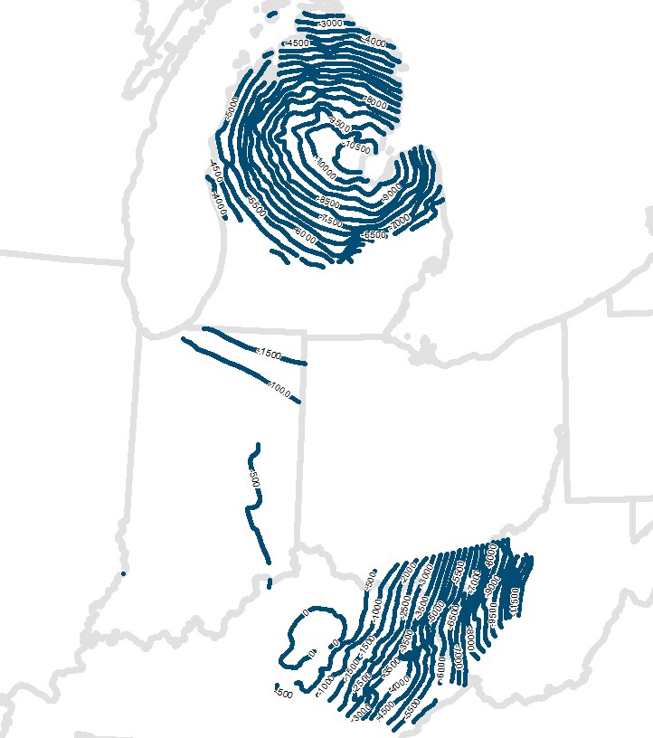 Description: <DIV STYLE="text-align:Left;"><DIV><DIV><P><SPAN>This is a structure contour map constructed upon the top of the St. Peter.</SPAN></P><P><SPAN>The contours were created from the related subsurface elevation grid or by contouring by hand from the subsurface elevation point values. Subsurface elevation is relative to mean sea level. Unit of measurement is in feet.</SPAN></P><P><SPAN>Author/Originator: Battelle Memorial Institute</SPAN></P><P><SPAN>Date Created: 2021</SPAN></P></DIV></DIV></DIV>
