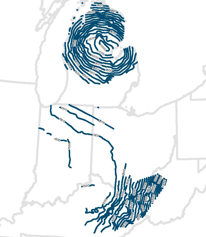 Description: <DIV STYLE="text-align:Left;"><DIV><DIV><P><SPAN>This is a measured depth contour map constructed upon the top of the St. Peter.</SPAN></P><P><SPAN>The contours were created from the related thickness grid of the overlying strata or by hand contouring using the measured depth point values. Unit of measurement is in feet.</SPAN></P><P><SPAN>Author/Originator: Battelle Memorial Institute</SPAN></P><P><SPAN>Date Created: 2021</SPAN></P></DIV></DIV></DIV>
