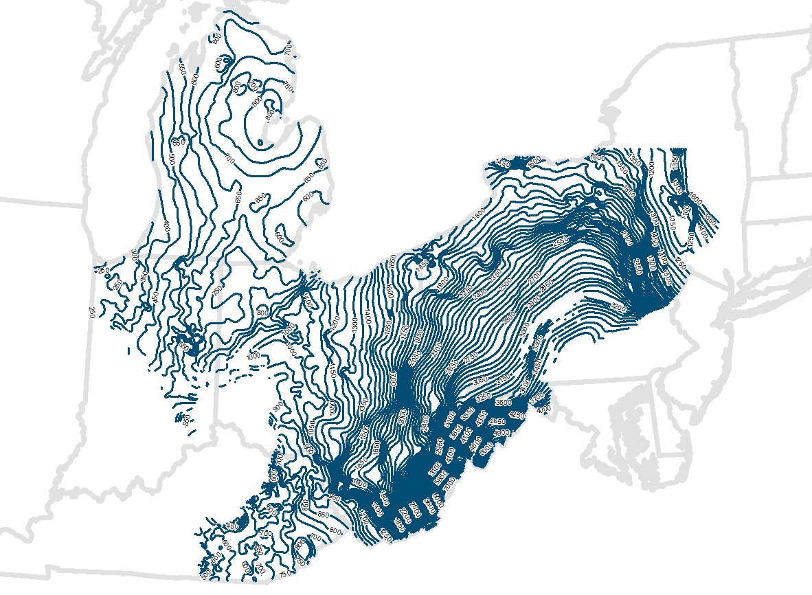 Description: <DIV STYLE="text-align:Left;"><DIV><DIV><P><SPAN>This is an isopach contour map of the Upper Ordovician in New York, Pennsylvania, Maryland, West Virginia, Kentucky, Ohio, Indiana and Michigan.</SPAN></P><P><SPAN><SPAN>The contours were created from the related thickness grid or by hand contouring using the thickness point values. </SPAN></SPAN><SPAN>Unit of measurement is in feet.</SPAN></P><P STYLE="margin:0 0 11 0;"><SPAN>Author/Originator: Battelle Memorial Institute</SPAN></P><P STYLE="margin:0 0 11 0;"><SPAN><SPAN>Date Created: 2021</SPAN></SPAN></P></DIV></DIV></DIV>