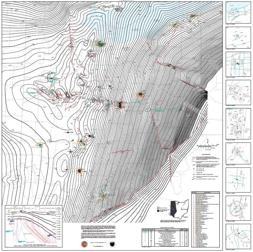 Description: <DIV STYLE="text-align:Left;"><DIV><DIV><P><SPAN>This data set contains subsurface information compiled from hardcopy and digital public data available at Ohio Division of Geological Survey, Ohio Division of Oil and Gas Resource Management, Class-one industrial waste sites and out of state agencies. The data in the dataset come from a number of different sources, which include hardcopy reports, well completion cards, core and sample descriptions, core and sample examination, open-hole geophysical well log analyses, and seismic reflection data. Location information is plotted in Ohio State Plane south zone coordinates from map coordinates digitized from well locations on hardcopy township well-spot maps which have been digitally corrected for political subdivision boundaries. Locations may not match reported State Plane coordinates from well completion information and most likely do not represent exact physical locations of boreholes either surface or at total depth.</SPAN></P><P><SPAN>This data set was created as part of a project to update and revise the Structure contour map on the Precambrian unconformity surface in Ohio and related basement features (Baranoski, 2002). Contours in Baranoski (2002) were originally hand digitized using Intergraph software and hardware. Contours, well data, faults, tables and drawings were and subsequently imported into ArcGIS shapefiles and reformatted The ArcGIS shapefiles were exported to be compiled with report and data tables as a pdf file. Data shows the location of Class-1 industrial waste disposal sites, brine disposal sites, locations with Precambrian paleotopographic erosional high areas, and locations drilled below into or proximal to the Precambrian unconformity surface and surrounding region. The revised version (Baranoski, 2013) was updated using Geographix software by adding well locations and digitally hand contouring. Updated maps and well data were exported as UTM Zone 17 84W-78W Longitude NAD 83 decimal degrees shape files from Geographix into Microsoft Excel and ARC. Microsoft Excel well data was imported into ArcGIS during final map finishing and into Adobe InDesign for report tables. The final report, map, and tables were compiled into a pdf file using Adobe InDesign.</SPAN></P><P><SPAN>This work was supported, in part, by funding from the Injection Well Review Fund and was performed in cooperation with the Ohio Environmental Protection Agency, Division of Drinking and Ground Waters. Richard Ostrowski with the Ontario Oil, Gas & Salt Resources Library in London, Ontario, provided additional Ontario data.</SPAN></P><P><SPAN>The following staff from the Ohio Geological Survey worked on this shapefile: Mark Baranoski was the author. Michael Solis reviewed an early revised version of the map. Dean Martin formatted the digital map data and set up the map layout. Lisa Van Doren updated tables and formatted the map into the final PDF file. Chuck Salmons edited final copy. Joseph Wells edited some of the digital data. Robert Hanover wrote the metadata.</SPAN></P><P><SPAN>Author/Originator: Mark Baranoski</SPAN></P><P><SPAN>Date Created: 6/30/2013</SPAN></P></DIV></DIV></DIV>