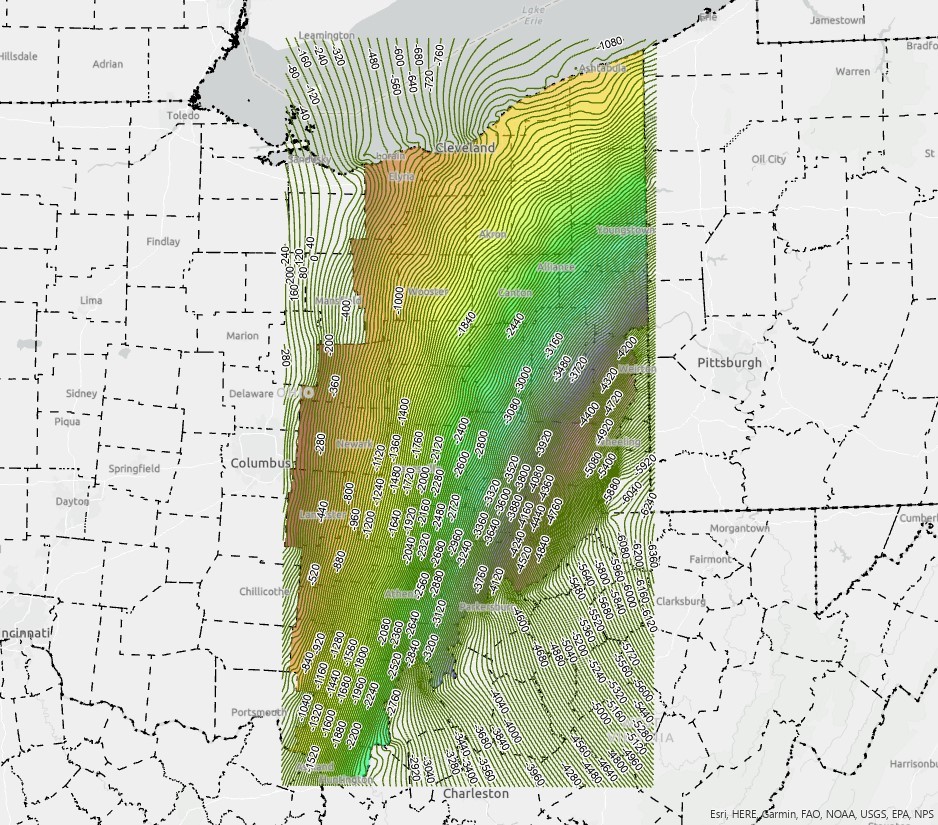 Description: This dataset was originally created for the Midwestern Regional Carbon Sequestration Partnership 2017 final report (Department of Energy Cooperative Agreement No. DE-FC26-05NT42589). Only eastern Ohio was studied, although the formation does extend beyond the area of interest. This data set contains subsurface information on the undifferentiated Upper Silurian Salina Group in eastern Ohio compiled from hardcopy and digital public data housed at the Ohio Department of Natural Resources (ODNR) Division of Geological Survey and Division of Oil and Gas Resources Management. Data points were determined by geologist using well logs throughout eastern Ohio in Petra software, and then exported in ArcGIS for contouring. Suspect tops were identified using cluster number. The resultant tops were gridded using both high-data density and low-data density models which were contoured, clipped, merged, and edited. The seamless contours were re-gridded with ArcGIS 3D Analyst.This work was funded in part of the Department of Energy Midwestern Regional Carbon Sequestration Partnership (Department of Energy Cooperative Agreement No. DE-FC26-05NT42589), and the Ohio severance taxes. The following staff members from the ODNR Division of Geological Survey worked on the dataset: Michael Solis and Julie Bloxson are the primary authors; technical support was provided by Dominique Haneberg-Diggs, Nathan Erber, and J.D. Stucker; additional contributions and oversight were provided by Mohammad Fakhari, Charles Salmons, Michael Angle, and Thomas Serenko.Author/Originator: Michael Solis and Julie Bloxson Date Created: 2017