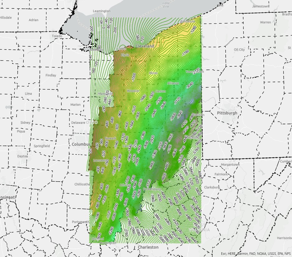 Description: This is a subsurface elevation grid constructed upon the top of the Bass Islands Dolomite in eastern Ohio. This dataset was originally created for the Midwestern Regional Carbon Sequestration Partnership 2017 final report (Department of Energy Cooperative Agreement No. DE-FC26-05NT42589). This data set contains subsurface information on the Silurian Bass Islands Dolomite in eastern Ohio compiled from hardcopy and digital public data housed at the Ohio Department of Natural Resources (ODNR) Division of Geological Survey and Division of Oil and Gas Resources Management. It potentially includes part of the Keyser Limestone in southeast Ohio, as determined through well log data variations in density and photoelectric effect. Data points were determined by geologist using well logs throughout eastern Ohio in Petra software, and then exported in ArcGIS for contouring. Suspect tops were identified using cluster number. The resultant tops were gridded using both high-data density and low-data density models which were contoured, clipped, merged, and edited. The seamless contours were re-gridded with ArcGIS 3D Analyst.This work was funded in part of the Department of Energy Midwestern Regional Carbon Sequestration Partnership (Department of Energy Cooperative Agreement No. DE-FC26-05NT42589), and the Ohio severance taxes. The following staff members from the ODNR Division of Geological Survey worked on the dataset: Julie Bloxson and Michael Solis are the primary authors; technical support was provided by Dominique Haneberg-Diggs, Nathan Erber, and J.D. Stucker; additional contributions and oversight were provided by Mohammad Fakhari, Charles Salmons, Michael Angle, and Thomas Serenko.Author/Originator: Julie Bloxson and Michael SolisDate Created: 2017