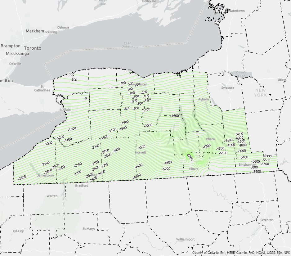 Description: This is a structure contour map constructed upon the top of the Medina Group in New YorkAuthor/Originator: Christopher B.T. WaidDate Created: 2021