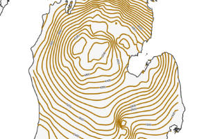 Description: This is a structure contour map constructed upon the top of the Amherstburg geologic unit.The contours were created from the related subsurface elevation grid or by contouring by hand from the subsurface elevation point values.Author/Originator: Michigan Geological SurveyDate Created: 2021