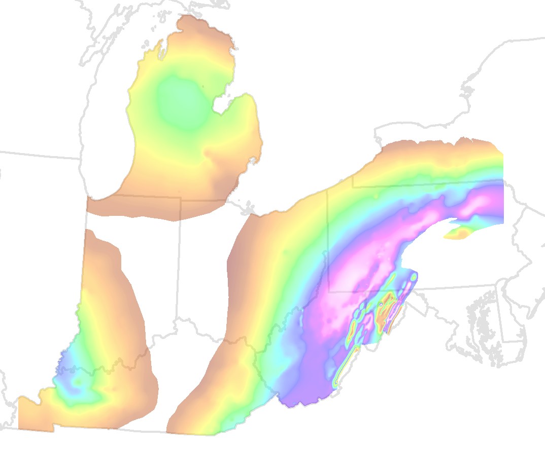Description: This is a subsurface elevation grid constructed upon the top of the Onondaga Limestone.The grid was create using a kriging/minimum curvature/IDW gridding algorithm.Author/Originator: Battelle Memorial InstituteDate Created: 2021
