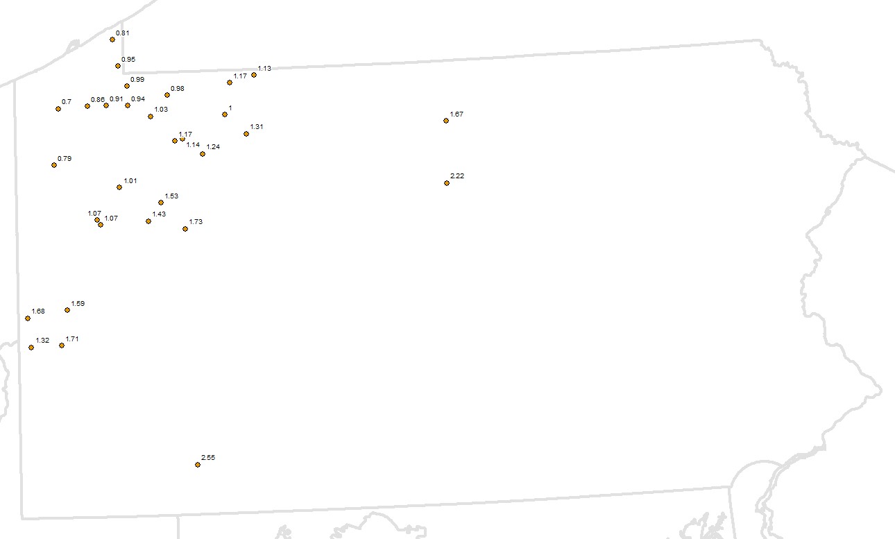 Description: This dataset contains the oil and gas well locations and thermal maturity values, based on vitrinite reflectance (Ro) measurements, used to create the thermal maturity map for the West Falls Formation, mostly sampled from the organic-rich Rhinestreet member, in Pennsylvania.Author/Originator: Battelle Memorial InstituteDate Created: 2021