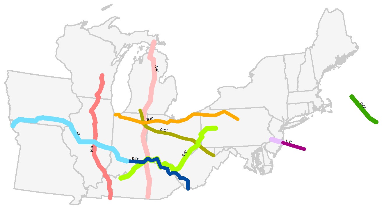 Dinterman, P., Greb, S.F., Lewis, J.E., Schmelz, W.J., Sparks, T.N., Solis, M.P., Medina, C., Carter, K.M., Barnes, D.A., Harper, J.A., Harrison, W.B., Moore, J.P., Miller, K.G., Hickman, J., Riley, R.A., McDowell, R., Rupp, J., Browning, J.V., and Gupta, N., 2020, Regional cross sections for potential storage and containment zones in the MRCSP region: U.S. Department of Energy, DOE MRCSP Project #DE-FC26-05NT42589, 19 p., 2 appendices, 6 plates, https://doi.org/10.2172/1755650